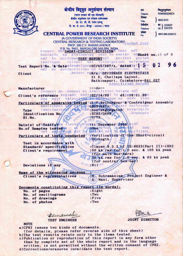 Our boards are built with high quality CRCA sheets from Tata and Sail, which gives to panel more strength. We adopt seven-tank process to prevent all types of corrosion and to get best powder coating finish. Our boards are type tested by CPRI � Bangalore that gives more value and safety to our panels.
